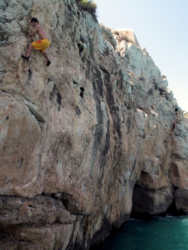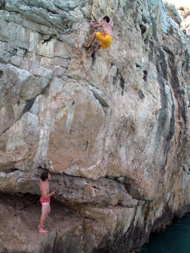 Alternativamente, también se puede practicar el psicobloc en algunos de los acantilados, para lo cual hay que nadar un rato desde la playa o acercarse con una barca.