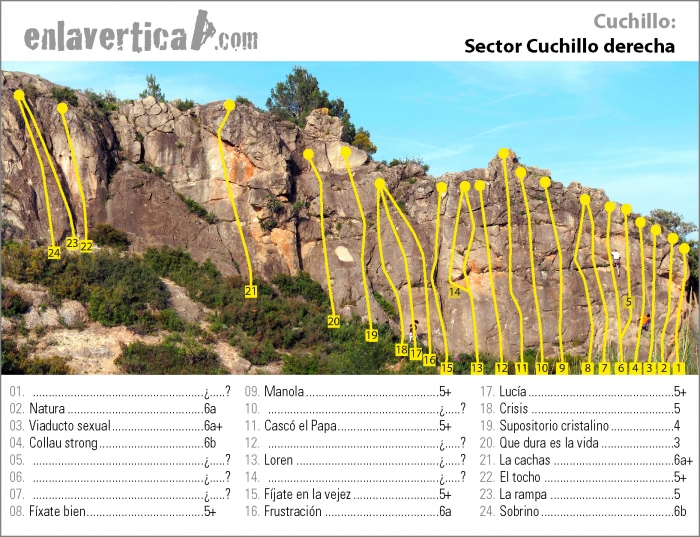 • Via 17 'Lucia' V+ - Zona derecha de la pared principal de la escuela de Cuchillo.