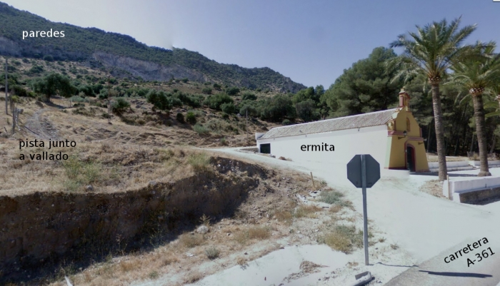 Desde Morón de la Frontera por la carretera A-361 hacia Montellano. Entre los kilometros 22 y 23 encontramos una ermita a mano izquierda. Se identifica por tener 3 o 4 palmeras plantadas delante de la fachada. Lugar apropiado para aparcar.