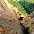 • Merli empezando la vía. - Mientras Jose y yo esperamos nuestro turno, escala Merli asegurado por Solete.