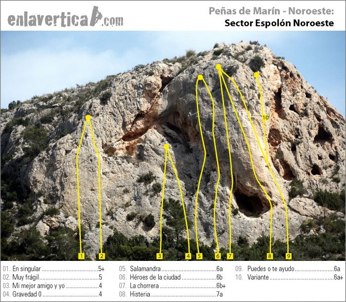 | Espolón Noroeste | caliza | 10 | 10' | 11-04-2010 |