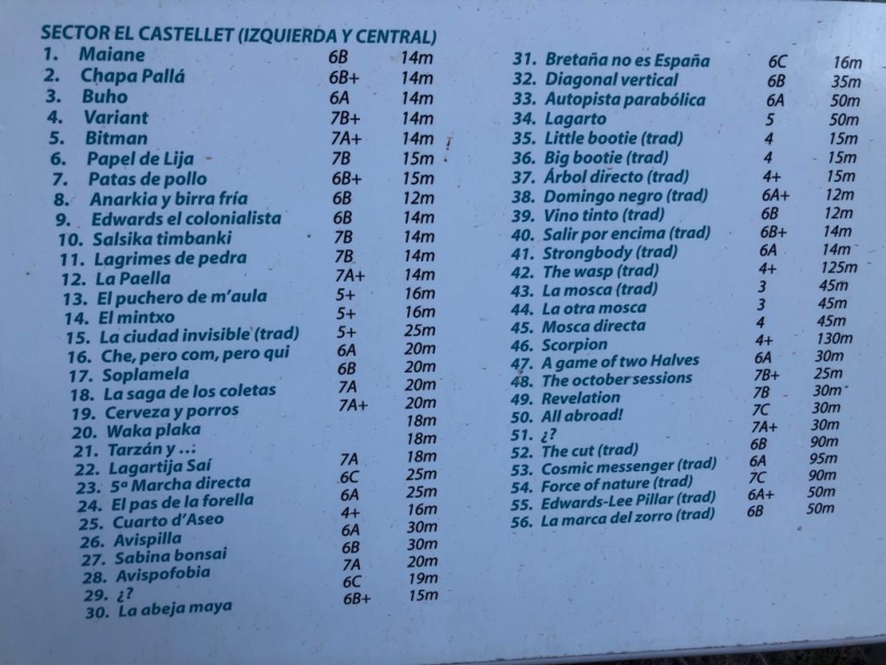 | Penya Molla | caliza | 11 | 5' | 02-02-2012 |