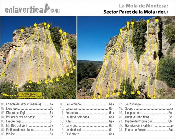Montesa es, sin lugar a dudas, una de las escuelas de escalada deportiva más concurridas de la provincia de Valencia. Su escasa aproximación, la benevolencia en la cotación del grado de sus vías, su excelente equipamiento, junto con un llano y cómodo pie de vía hacen de Montesa un lugar idóneo donde iniciarse en el mundo de la escalada deportiva.