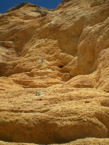 La roca que encontraremos será una caliza muy porosa con gran cantidad de agujeros que resulta algo abrasiva.