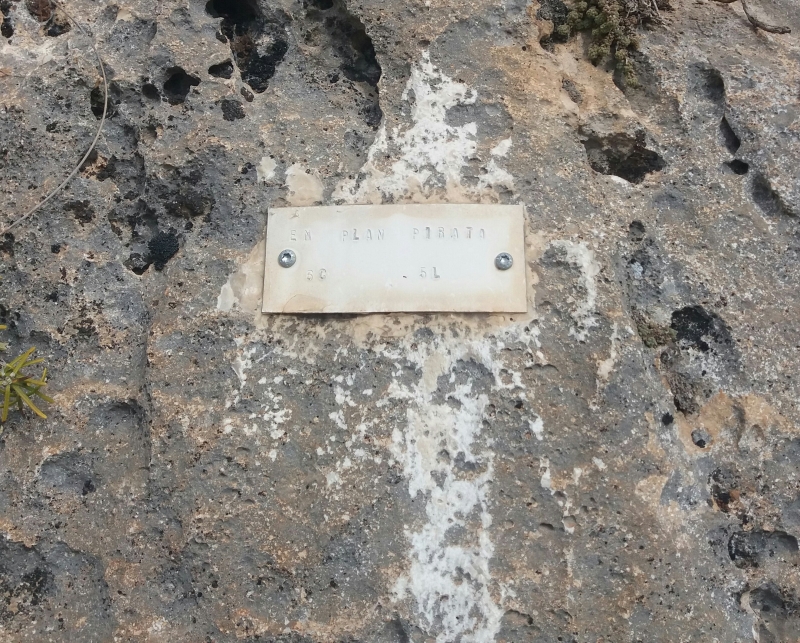 Tiene una placa con el nombre, el número de largos y el grado máximo al inicio.