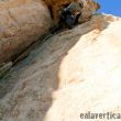 Este largo continua por el final de la fisura, muy disfrutona, para realizar una fina travesía a la derecha donde encontraremos el paso del largo protegido por dos clavos. La reunión de este largo es cómoda con una cadena con argolla (rapelable), dos parabolts y dos spits. La reunión se comparte con la vía Rompededos. Se puede empalmar sin problemas con el siguiente.