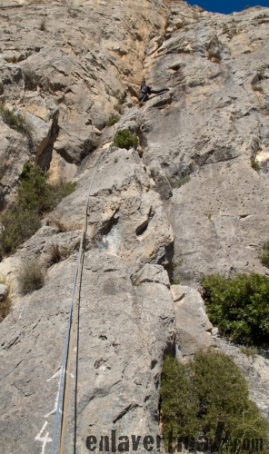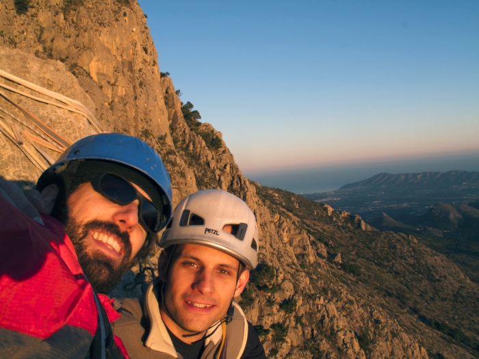 Mítica vía del Puig Campana de recorrido evidente, reuniones semiequipadas y largos muy disfrutones. Vale la pena.