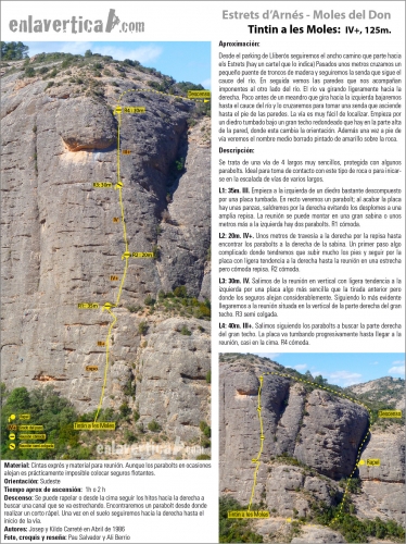 Se trata de una vía de 4 largos muy sencillos, protegida con algunos parabolts. Ideal para toma de contacto con este tipo de roca o para inicarse en la escalada de vías de varios largos.