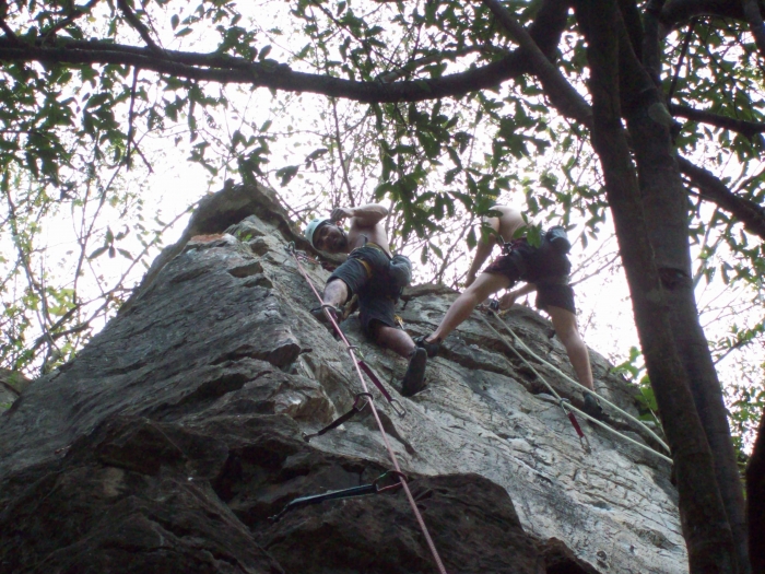 Esta vía queda del lado izquierdo de Monciel (de frente a la roca). A partir de la 3 chapa hay que alejarse de la arista de la roca y ascender un poco a la derecha de la vía.